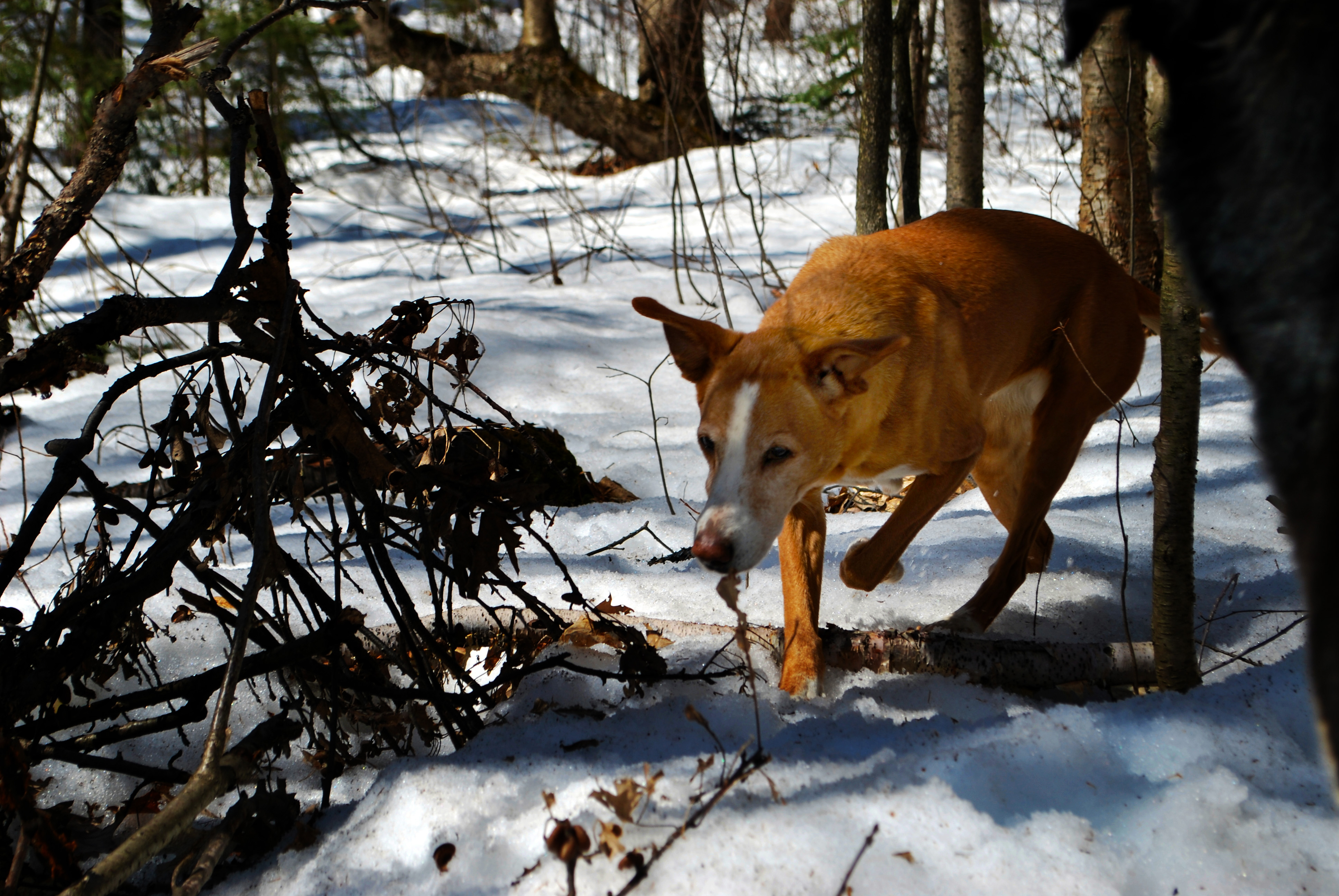 The stiff, crisp snow crunches beneath my feet, spring is coming. The days have grown warmer and the melt has caused the snow to become icy. I walk slowly, trying to take in the forest, breathing the clean crisp air, enjoying the rich smells of maple and oak, listening to the whispers of the forest. Life seems so far away here, I wish I could stay, never go back. Back to the world, it scares me, stress and uncertainty haunt me. The dark clouds of responsibility hang over me, the daily routines make my life dry, like a field parched and wishing for rain. Work is dull and grey, love is gone from my life only grief and sadness remains of a soul taken too soon from the world. Even co-workers seem distant and uncaring, worries often overwhelm and I struggle more days than I like. Here in the forest I am free, I do not feel the burdens. The walking relaxes me, calms me.
